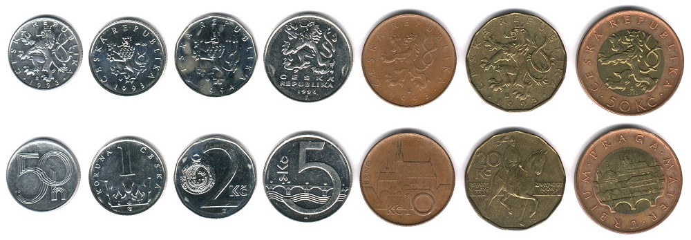 | Forgalomban lévő érmék: | 1, 2, 5, 10, 20, 50 Kč |